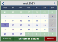 Bij het gebruik van de 3 puntjes verschijnt het volgende scherm. Op deze manier kan je sneller de juiste datum selecteren. | Bij het gebruik van de 3 puntjes verschijnt het volgende scherm. Op deze manier kan je sneller de juiste datum selecteren. | ||